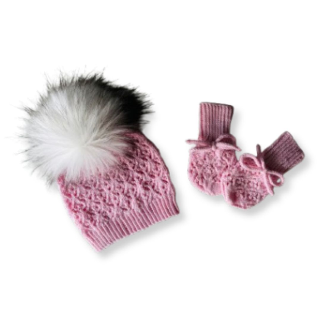 Alma hue og vanter er en del af et sæt, hvor der også findes en cardigan, kyse og heldragt i samme serie, for at kunne fuldende et helt sæt. Opskriften indeholder et udførligt mønsterdiagram.