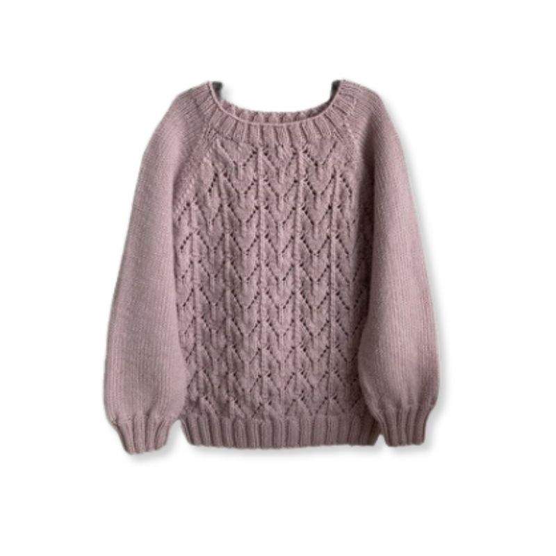 Daphne Sweateren er strikket i Merino Extra Fine, som er en dejlig blød og børnevenlig uld. Den er strikket fra bunden og op, med et smukt mønster på både ryggen og forstykket. Ærmerne har balloneffekt som strikkes separat og samles med ryg- og forstykke, hvor der laves indtagninger for raglan, hvorefter arbejdet afsluttes med en ribkant omkring halsåbningen. Mønsteret er detaljeret beskrevet i et diagram.