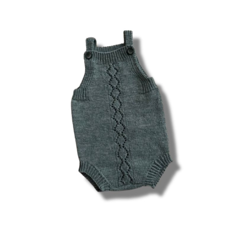 Elliot Romper er en del af et sæt, hvor der også findes en cardigan til. Den er strikket i en lækker blandning af uld og bomuld. Romperen er strikket oppe fra og ned, med minimal montering efterfølgende. Der er isat knapper som gør, at selerne kan forlænges. Opskriften indeholder et udførligt mønsterdiagram.