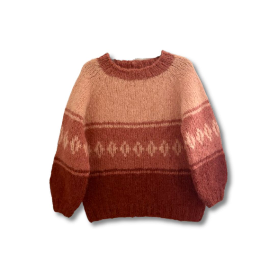 Luna er en blød og lækker sweater strikket i Alpaca Silk i brændte farver, der matcher godt sammen. Den strikkes nedefra og op. Ærmerne strikkes hver for sig og sættes derefter sammen med ryg og forstykke, hvorefter bærestykket strikkes rundt med raglan-indtagninger. Opskriften indeholder et detaljeret mønsterdiagram.