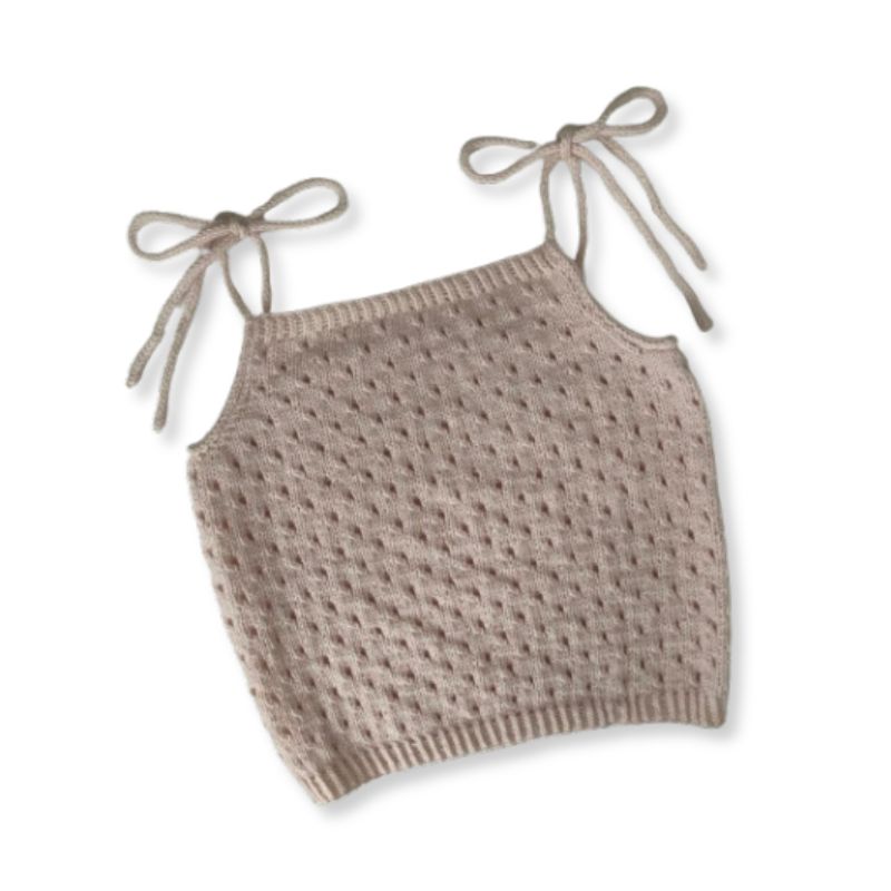 Mille top, er en del af et sæt, hvor der også findes et par Mille shorts. Toppen strikkes nedefra og har et fint og enkelt mønster på front og bagstykke. Der samles masker op i ærmegabet, hvorefter stropperne strikkes direkte på toppen. Opskriften indeholder et udførligt mønsterdiagram.